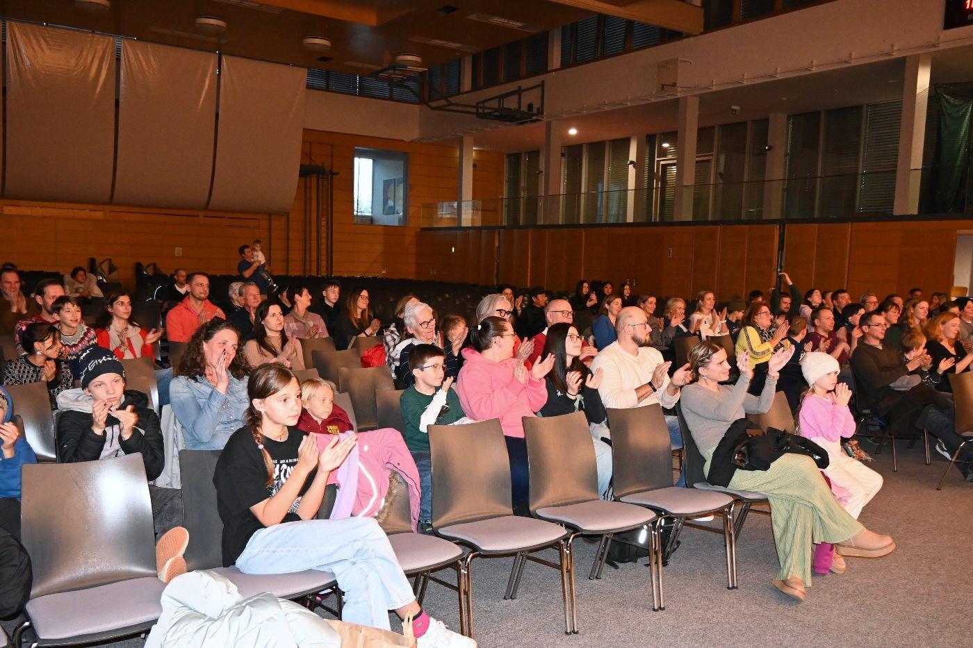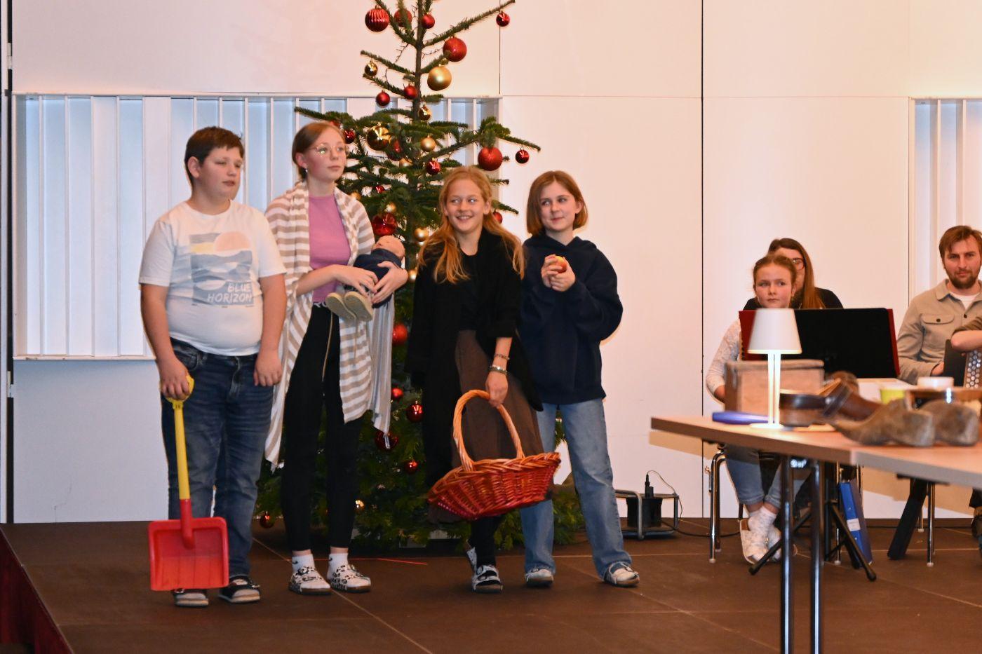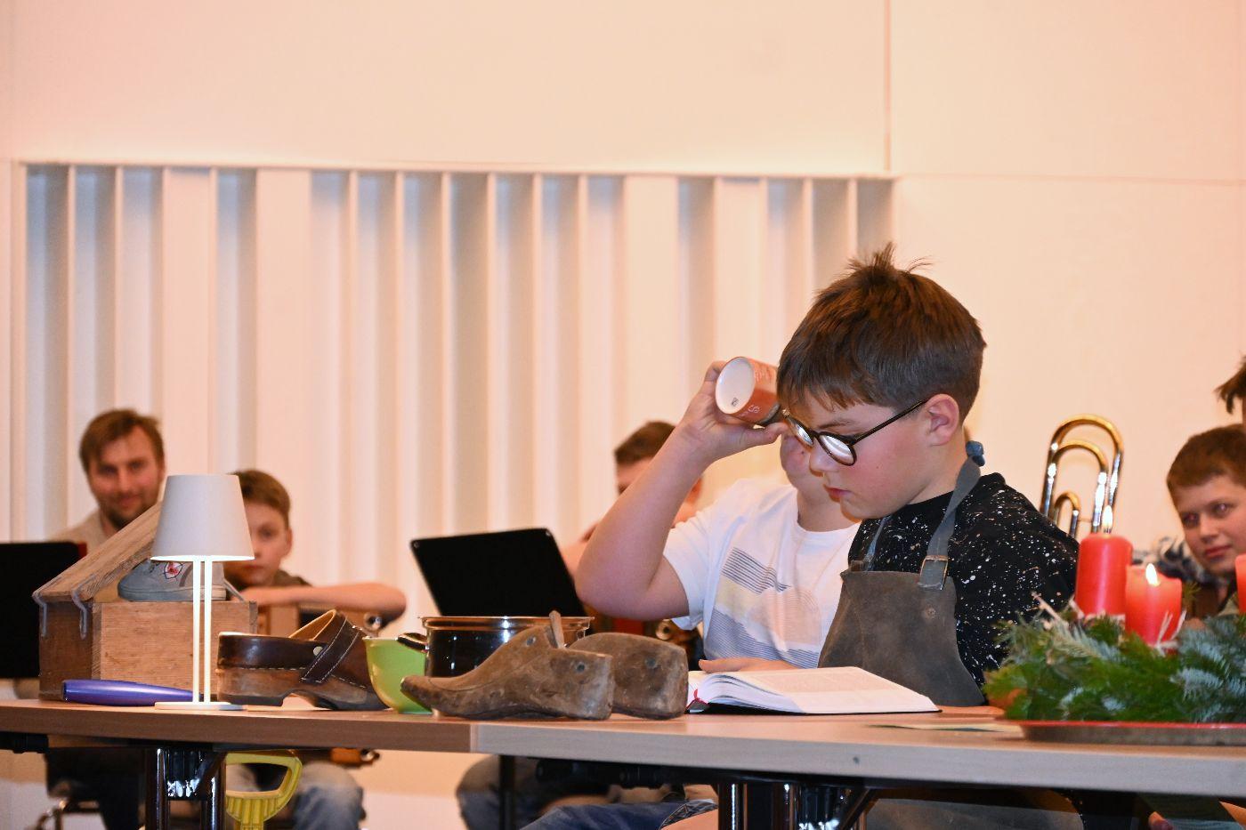 Lichtgeschichte und der Legende vom Schuster Martin begeisterte das Publikum. Anschließend waren alle zu Punsch und Keksen eingeladen.